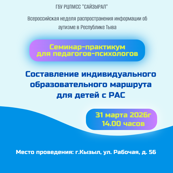 В рамках проведения Всероссийской недели распространения информации об аутизме в Республике Тыва с 28 марта по 05 апреля 2024 года проведены различные мероприятия для родителей (законных представителей), специалистов и детей.